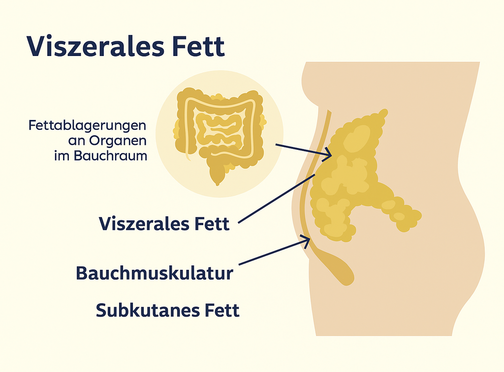Viszerales Fett ist stoffwechselaktiv und produziert Hormone sowie Entzündungsstoffe, sogenannte Adipokine, die Blutdruck, Blutzucker und Fettverteilung negativ beeinflussen. Dieses innere Bauchfett umgibt die Organe und ist besonders gefährlich, da es schwer sichtbar ist.